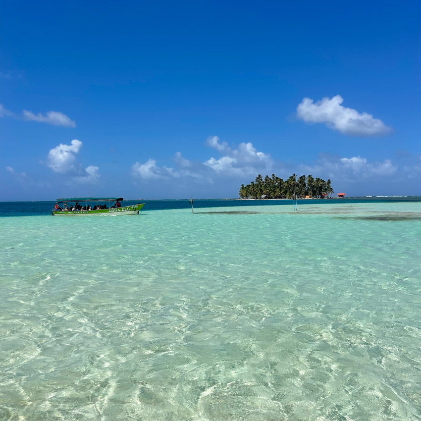 Una vez en el mar, comenzará el recorrido privado por diferentes islas del archipiélago de San Blas.